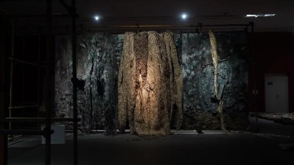 艺术家郭振宇匠心独运创作材料,以黄河沙的粗粝承载历史,用青麻的柔韧连接自然,借炭块的深沉隐喻转化,取金属的冷峻观照工业文明。通过烧灼、凿刻等极具力量感的创作手法,使作品所迸发出强烈的视觉冲击力,激发了观众对“物”与“我”关系的思考,引导观众在沉浸式的空间中驻足凝思,重新审视自身与世界的关系。