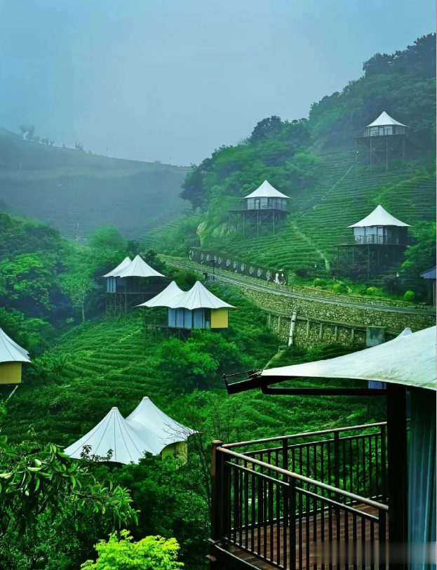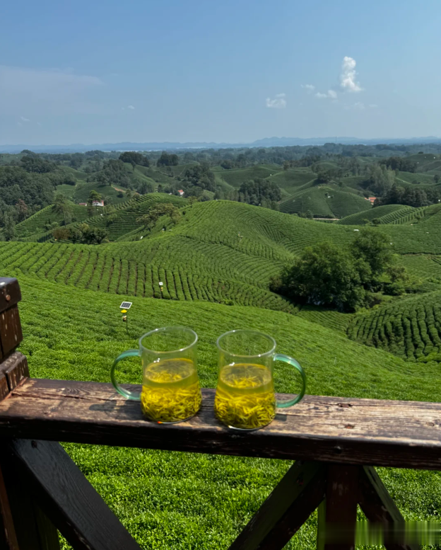 万亩梯田茶园如翡翠波浪,登上观景台可拍出《国家地理》同款大片! 还能穿采茶服采春茶、看非遗炒茶表演,再喝一杯现泡毛尖,茶香直抵心尖!