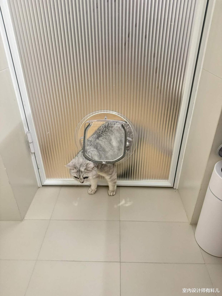 可以在门上开个猫门,猫咪自由进出,人宠两便。